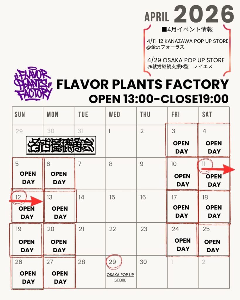 4月になりました! 今月は・・・ 4月11-12日 金沢ポップアップストア(金沢フォーラス) 4月29日 大阪ポップアップストア(就労継続支援B型 ノイエス) 全国に飛び回ってビカクシダの素晴らしさをお伝えします^^ お知らせ Thanks Share URLをコピーしました! 3月の営業スケジュール